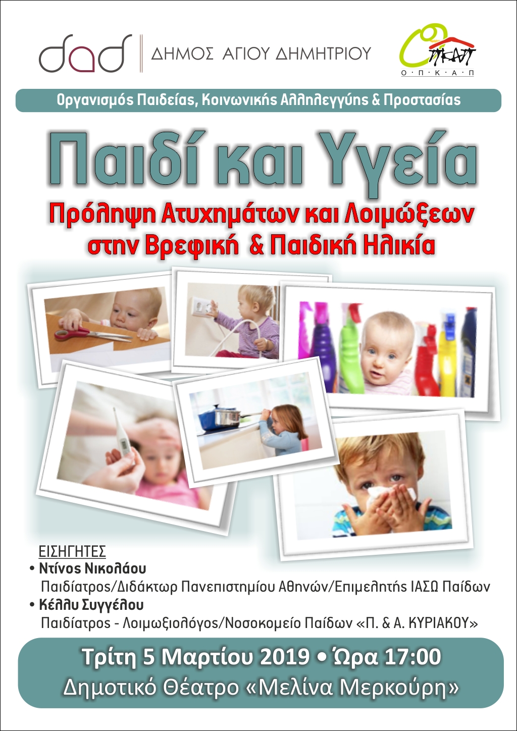 Οι καταρτιζόμενοι της ειδικότητας Βρεφονηπιοκόμων, τμήματα Β1, Β2, Δ1 & Δ2 καλούνται να προσέλθουν στο Δημοτικό Θέατρο “Μελίνα Μερκούρη” την Τρίτη 5 Μαρτίου 2019 και ώρα 16.50, στη Λεωφόρο Αγίου Δημητρίου 55, έναντι του Δημαρχείου.